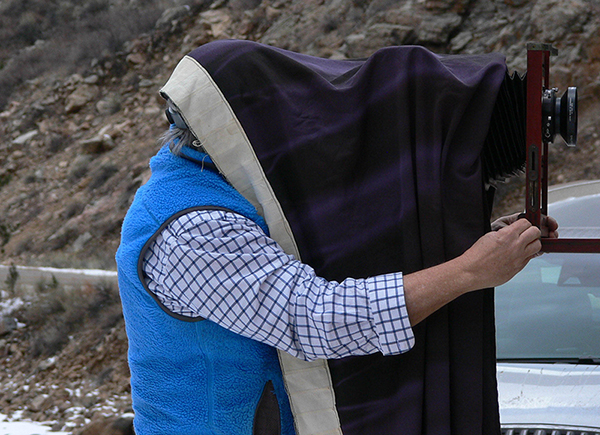 Here's that camera, then the Sinar...and me "under the hood" focusing a
